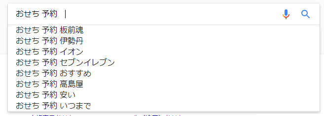 すると今度は「おせち 予約」の後につく人気のキーワードたちがズラリと表示されました。